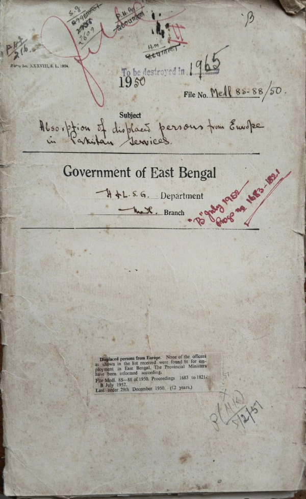 | Rack No. 10, Bundle No. 114, Sl No. 9415 Extension of Dr. Navak, Prof. of Chemical Surgery. | Rack No. 10, Bundle No. 114, Sl No. 9416 Fixation of pay & allowance of menials attached to the Ambulances. | Rack No. 10, Bundle No. 114, Sl No. 9417 Retition from Mrs. Sarsha Bala Das attached to Sadar Hospital Rangamati. | Rack No. 10, Bundle No. 114, Sl No. 9418 Absorption of displaced persons from European Services. | Rack No. 10, Bundle No. 114, Sl No. 9419 Repair of the T.B. Segregation Hospital at Barisal. | Rack No. 10, Bundle No. 114, Sl No. 9420 Release of recovered criminal lunatic Erfanuddin. | Rack No. 10, Bundle No. 114, Sl No. 9421 Improvement of the Sadar and Sub-divisonal Hospital in the District of Barisal. |