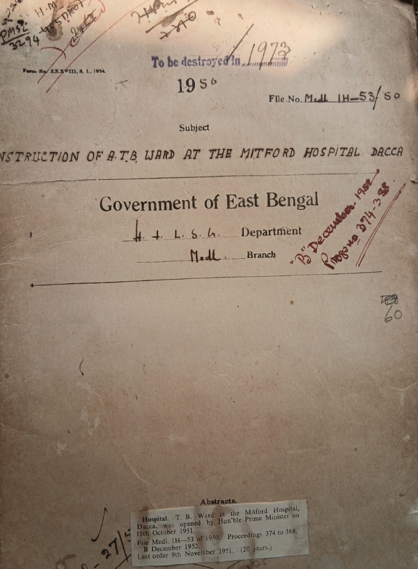 | Rack No. 10, Bundle No. 118 Sl No. 9757 Payment of the bill of Rs. 176/5/6 of M (S.K.P. Shah + Sons Chemists + Bruges's of the supply of first Aid equipment at Manipur Dacca. | Rack No. 10, Bundle No. 118 Sl No. 9758 Pakistan practitioners of in digamous System of medicine Bill by Mr. Nur Ahmed. | Rack No. 10, Bundle No. 118 Sl No. 9759 Appointment of Dr. Z.B. Kazi. | Rack No. 10, Bundle No. 118 Sl No. 9760 Construction of A.T.B. Wahd of the Mitford Hospital. | Rack No. 10, Bundle No. 118 Sl No. 9761 Conformation of Mv. R.G. Chaudhury Secg. D.M.C. Counseling of an service of curtail R.G. Chaudhury. | Rack No. 10, Bundle No. 118 Sl No. 9761 Representation from the wife of Dr. Afsar a S.A.S. Civil Lt. Sylhet for promotion to the A.S. | Rack No. 10, Bundle No. 118 Sl No. 9763 Sub. Assistant Surgeon Dr. Md. Sabed Ali. |