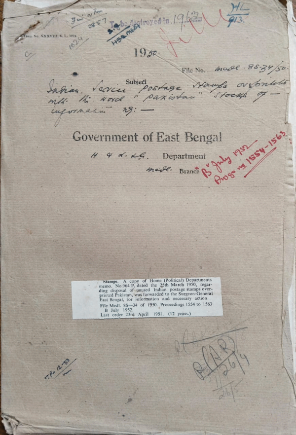 | Rack No. 10, Bundle No. 114, Sl No. 9420 Release of recovered criminal lunatic Erfanuddin. | Rack No. 10, Bundle No. 114, Sl No. 9421 Improvement of the Sadar and Sub-divisonal Hospital in the District of Barisal. | Rack No. 10, Bundle No. 114, Sl No. 9422 Dr. A.M. Aftabuddin Ahmed Choudhury drawal of allowances as M/O. govt. Hospital, Dacca. | Rack No. 10, Bundle No. 114, Sl No. 9423 Indian Service Postage Stamps overprinted with the ward "Pakistan" Stocks of information. | Rack No. 10, Bundle No. 114, Sl No. 9424 Appointment of Dr. Ahmed Mohiuddin as a professor of anatomy in the Dacca Medical College. | Rack No. 10, Bundle No. 114, Sl No. 9425 Improvement of the Sub-Divisional Hospital at Gaibandha, Rangpur. | Rack No. 10, Bundle No. 114, Sl No. 9426 Certain additional works in the Nurses quarters of the Medical College Hospital, Dacca. |