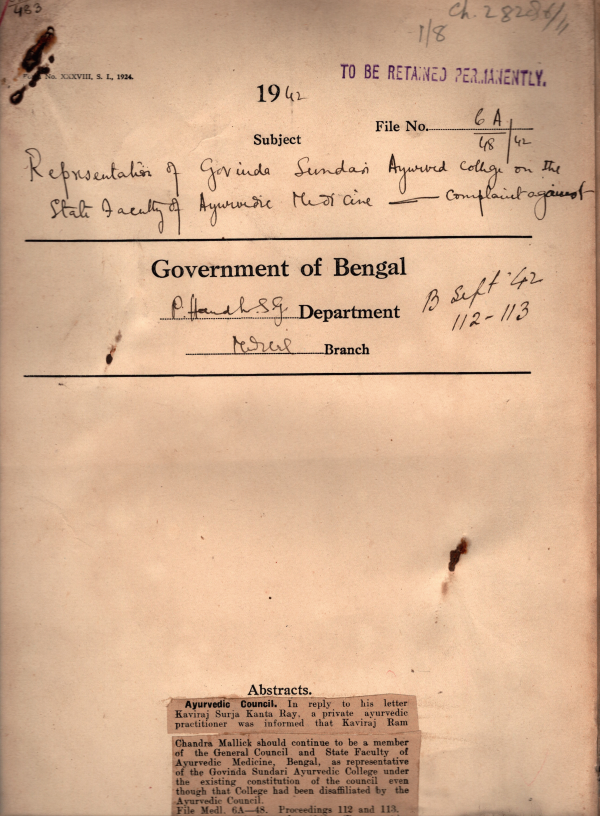 | Rack No. 09; Bundle No. 92 SL No. 7174 War injuries scheme amendment of | Rack No. 09; Bundle No. 92 SL No. 7175 Birat U.B. Charitable Dispensary in the District of Rangpur Discretionary grant to. | Rack No. 09; Bundle No. 92 SL No. 7176 Exampling from arrear contribution payable to Govt. by the Kurseong dispensary on a/c of the pay of the S.A.S. | Rack No. 09; Bundle No. 92 SL No. 7177 Representation of Govinda Sundari Ayurvedic College on the State Faculty of Ayurvedic Medicine Complaint against. | Rack No. 09; Bundle No. 92 SL No. 7178 Exemption of Babu Sunil Kanta Barua, a 2nd year student of the Chittagong Medical School from payment of his tuition fee. | Rack No. 09; Bundle No. 92 SL No. 7179 Re-employment lt. Cal. K.S. Trakur, I.M.S. after his retirement proposal for | Rack No. 09; Bundle No. 92 SL No. 7180 Entertainment of temporary staff in the Uttarpara Hospital. |