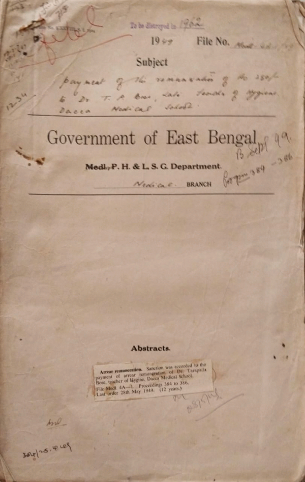 Payment of the remuneration of Rs. 250/- to Dr. Bose, Late teacher of Hygiene, Dacca Medical School.