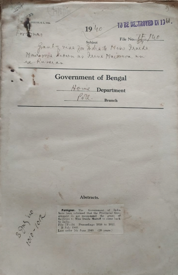 Grant of Visa for India to Miss. Iraida Mairoff an Ex-Russian.