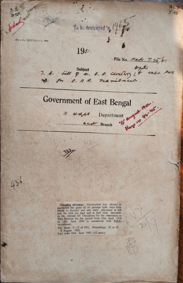 T.A. of Dr. A.A. Choudhury West Pakistan for E.P.R. recruitment.