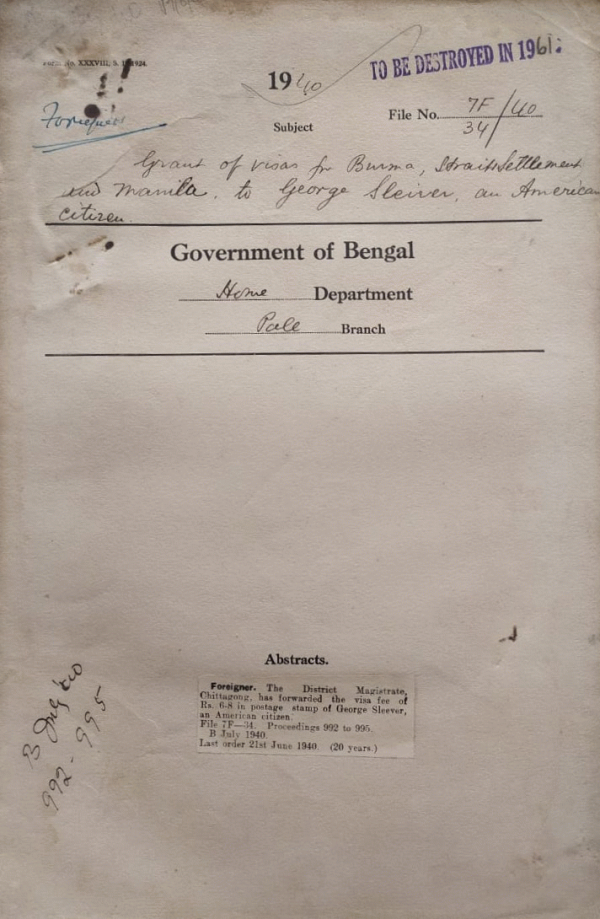 | Rack No. 42, Bundle No. 08, Sl No. 500 Grant of Visa for India to Mr. & Mrs. Robert Stanley Shaw. | Rack No. 42, Bundle No. 08, Sl No. 501 Grant of Visa for India to Miss. Barbara Kessen of America. | Rack No. 42, Bundle No. 08, Sl No. 502 Grant of Visa for Burma to Gul Khan of Afghan National. | Rack No. 42, Bundle No. 08, Sl No. 503 Grant of Visa for India to Georage Slecver an American Citizen. | Rack No. 42, Bundle No. 08, Sl No. 504 Grant of Visa for U.K. for B.N.V. Heir & J.G. Roosenberg, Netherlands Subject. | Rack No. 42, Bundle No. 08, Sl No. 505 Grant of Passport to relatives of Mr. W.W.J. Wieder. | Rack No. 42, Bundle No. 08, Sl No. 506 Grant of Passport to Chang Theatrical Party. |