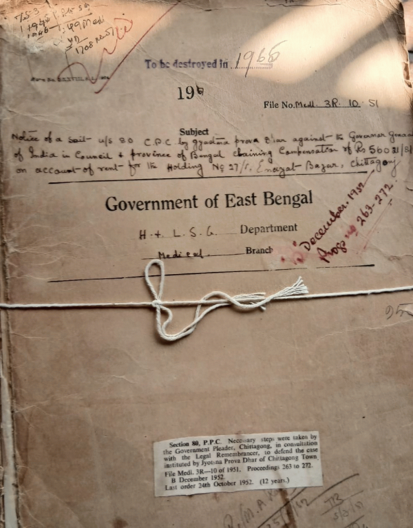 | Rack No. 10, Bundle No. 118 Sl No. 9792 Budget estimate for the year 1950-51 and received budget estimate for the year 1949-50 under the head "38 Medical". | Rack No. 10, Bundle No. 118 Sl No. 9793 Reciprocal arrangement of registration of doctors between Punjab and East Bengal Medical Councils. | Rack No. 10, Bundle No. 118 Sl No. 9794 Study leave of Dr. Q. A. Khaleque on higher medical training abroad. | Rack No. 10, Bundle No. 118 Sl No. 9795 Section 80, P.P.C. the govt. pleader Chittagong. | Rack No. 10, Bundle No. 118 Sl No. 9796 Appointment of night Guard for the office often C.A.S. Chittagong Hill Tracts. | Rack No. 10, Bundle No. 118 Sl No. 9797 Staff for the medical College at Dacca. | Rack No. 10, Bundle No. 118 Sl No. 9798 Appointment of Dr. Anwar Hossain Azami as House. S. to the Prof. of Clinical Midwifery D.M.C. Hospital. |