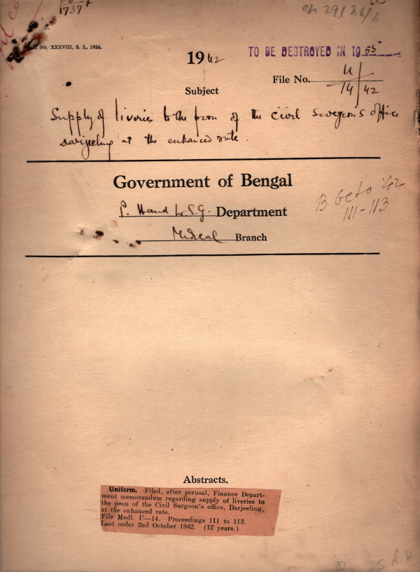 Supply of liveries to the peon of the Civil Surgeons office Darjeeling at the enhanced rate.