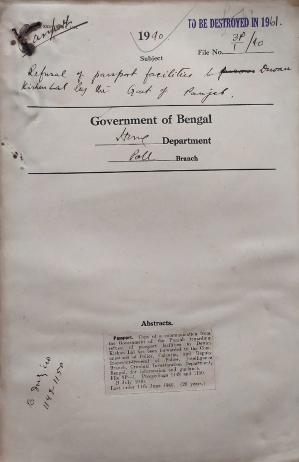Refusal of passport facilities to Dewan Kishun by the Govt. of Punjab.
