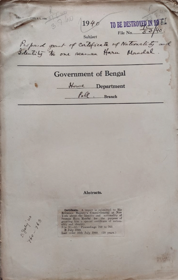 | Rack No. 42, Bundle No. 08, Sl No. 530 Supply of information to the National Geographic Society. | Rack No. 42, Bundle No. 08, Sl No. 531 Grant of travel facilities for Burma to Mr. Rudlof Roelz & his wife, American Citizen. | Rack No. 42, Bundle No. 08, Sl No. 532 Withdrawal of permission for wearing by British Subjects of German & Italian decorations & medals. | Rack No. 42, Bundle No. 08, Sl No. 533 Grant of Certificate of nationality & Identity to Zeaman Haru Madndal. | Rack No. 42, Bundle No. 08, Sl No. 534 Reconstruction of the Managing committee of the Alipore Zoological Garden. | Rack No. 42, Bundle No. 08, Sl No. 535 Visit of Mr. Landesman a Czechoslovak Subject to Bombay. | Rack No. 42, Bundle No. 08, Sl No. 536 Refund of Rs. 500 to Mr. J. Ferguson deposited by him prior to his departure from India. |