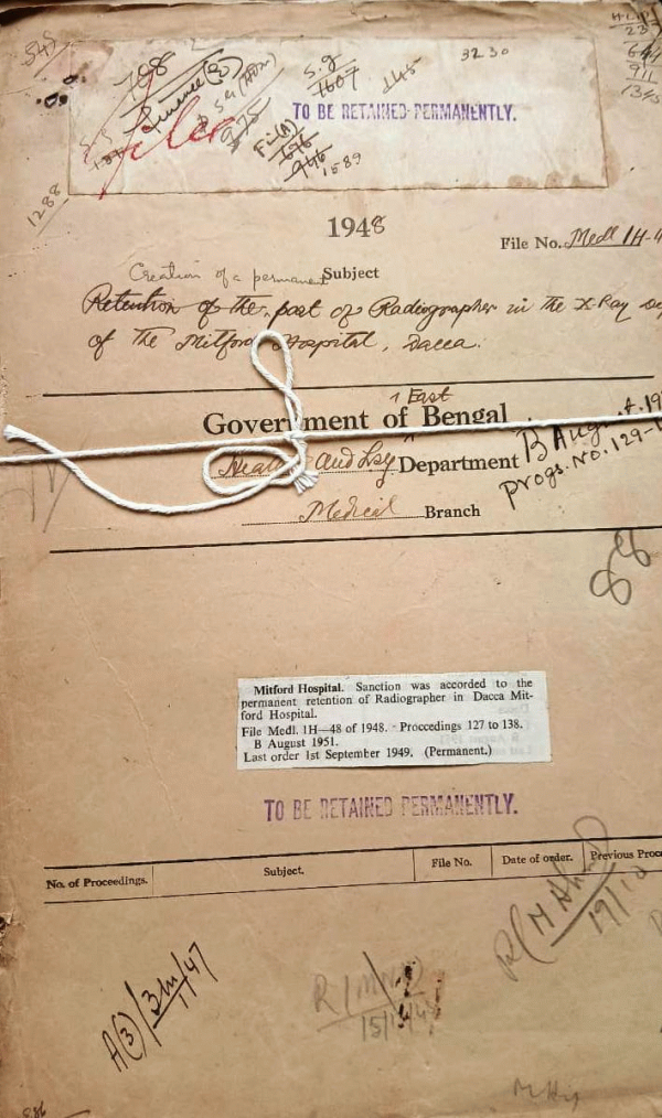 | Rack No. 09, Bundle No. 107, Sl No. 8760 Questions whet on the proceedings of the medical board should be intimated to the candidates. | Rack No. 09, Bundle No. 107, Sl No. 8761 Theft in the ratandi Govt. out down Display. | Rack No. 09, Bundle No. 107, Sl No. 8762 Appointment of whole time principals of medical college. | Rack No. 09, Bundle No. 107, Sl No. 8763 Provincial of public health and medical service of the board. | Rack No. 09, Bundle No. 107, Sl No. 8764 Payment of Rs. 17/4/- to the compound quarters of Growing ghat thana dispensary district of Sylhet. | Rack No. 09, Bundle No. 107, Sl No. 8765 Appointment of Dr. N.I. Chowdhury as A.S. Sunamgong district of Sylthet. | Rack No. 09, Bundle No. 107, Sl No. 8766 Formation of disposal Board for the Disposal of unserviceable articles of the D.R.S. in this Province. |
