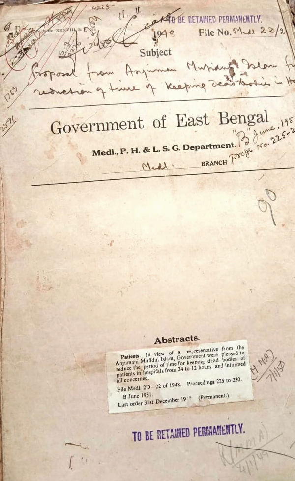 | Rack No. 09, Bundle No. 107, Sl No. 8762 Appointment of whole time principals of medical college. | Rack No. 09, Bundle No. 107, Sl No. 8763 Provincial of public health and medical service of the board. | Rack No. 09, Bundle No. 107, Sl No. 8764 Payment of Rs. 17/4/- to the compound quarters of Growing ghat thana dispensary district of Sylhet. | Rack No. 09, Bundle No. 107, Sl No. 8765 Appointment of Dr. N.I. Chowdhury as A.S. Sunamgong district of Sylthet. | Rack No. 09, Bundle No. 107, Sl No. 8766 Formation of disposal Board for the Disposal of unserviceable articles of the D.R.S. in this Province. | Rack No. 09, Bundle No. 107, Sl No. 8767 Sanction of a Coolie for the Dacca medical college stone. | Rack No. 09, Bundle No. 107, Sl No. 8768 Sanction to the T.A. bill Rs. 168/6 of Mr. S.C. Gupta M.L.A. for attending of meeting of section D.M.C. for the year 1949-50. |
