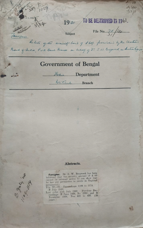 | Rack No. 42, Bundle No. 08, Sl No. 556 Loss of British Indian Passport of Mrs. Rose Earle. | Rack No. 42, Bundle No. 08, Sl No. 557 List of alien missionaries who may be admitted into India. | Rack No. 42, Bundle No. 08, Sl No. 558 Refusal of Passport & Visas to drug traffickers. | Rack No. 42, Bundle No. 08, Sl No. 559 Re release of security deposit. | Rack No. 42, Bundle No. 08, Sl No. 560 Instruction regarding the grant of visas for India to Jewish Refugees from Europe. | Rack No. 42, Bundle No. 08, Sl No. 561 Rules & regulation relating to Indian passport. | Rack No. 42, Bundle No. 08, Sl No. 562 Police Parade at Dacca, 1940. |