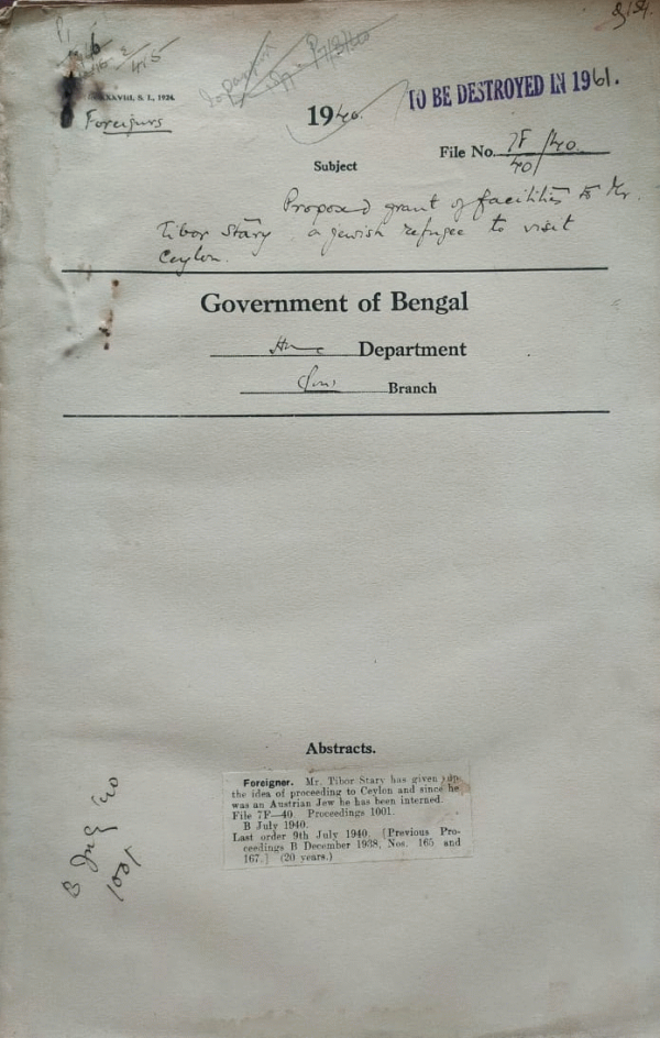 Grant of facilities to Mr. Tiber Stary, an Austrian Jewish refugees to visit Ceylon
