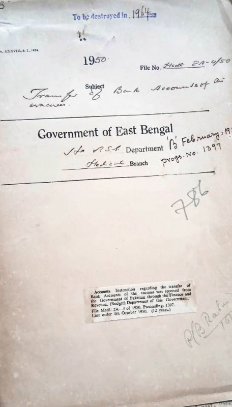 | Rack No. 09, Bundle No. 107, Sl No. 8783 Re-imbursement of Rs. 156/- of S.F. Meenzaon account of costs incurred for the treatment of his son in medical college hospital Dacca. | Rack No. 09, Bundle No. 107, Sl No. 8784 Posting of a M.O. holding L.F.M. degree on a fixed pay Rs. 150 per month of interim increase in pay and deadness allowance. | Rack No. 09, Bundle No. 107, Sl No. 8785 Extra remuneration to Dr. M. Manika Chowdhury Lady A.S. Civil Hospital Sylhet. | Rack No. 09, Bundle No. 107, Sl No. 8786 Transfer of Bank accounts of the Vacuous. | Rack No. 09, Bundle No. 107, Sl No. 8787 Increment of Dr. Ansaruddin Chowdhury C.S. Dinajpur. | Rack No. 09, Bundle No. 107, Sl No. 8788 Recruitment of East Pakistan medical Service (Upper) Officers. | Rack No. 09, Bundle No. 107, Sl No. 8789 Accommodation of the staff of the central medical stones at Tejgaon. |