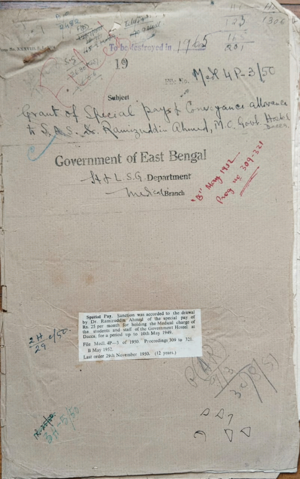 Grant of special pay & conveyance allowance to S.A.S. Dr. Ranizuddin Ahmed M/O. govt. Hostel, Dacca.