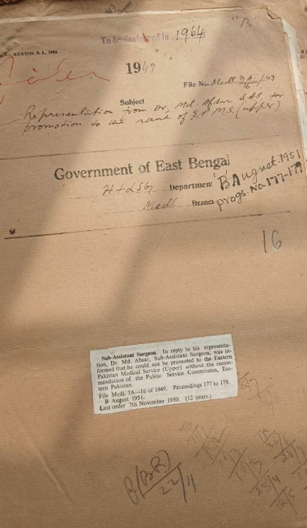 Representation from Dr. MD. Absar, S.A.S. for Promotion to the work of E.P.M.S. (upper).