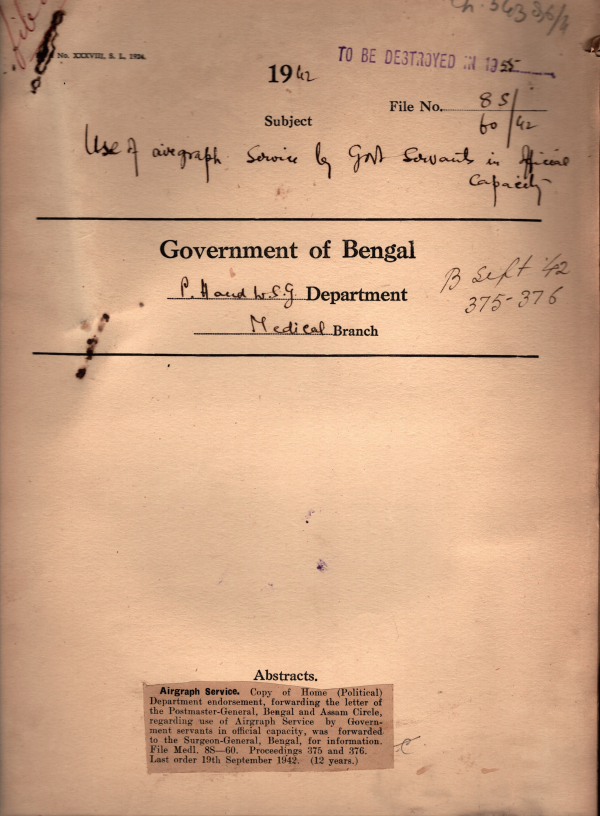| Rack No. 09; Bundle No. 93 SL No. 7255 Exodus allowance to members of the clerical establishment and menials of officers outside Calcutta. | Rack No. 09; Bundle No. 93 SL No. 7256 Additional grant u/h "Purchase of Books" for Mental observation ward, Bhowanipore. | Rack No. 09; Bundle No. 93 SL No. 7257 Release of Crimina lunatic Gostha Muchi. | Rack No. 09; Bundle No. 93 SL No. 7258 Use of Air graph Service by govt. servants in official Capacity | Rack No. 09; Bundle No. 93 SL No. 7260 Writing off of the account of the rule books of the Ronaldshay Medical School, Burdwan | Rack No. 09; Bundle No. 93 SL No. 7261 Remission of Contribution Payable by the Barisal Dispensary on account of the Service of the Sub-Assistant Surgeon, lent to them. | Rack No. 09; Bundle No. 93 SL No. 7263 Relaxation of S.M. Faculty Rule 3 & 4 in favour of the regulations for that Examination. |