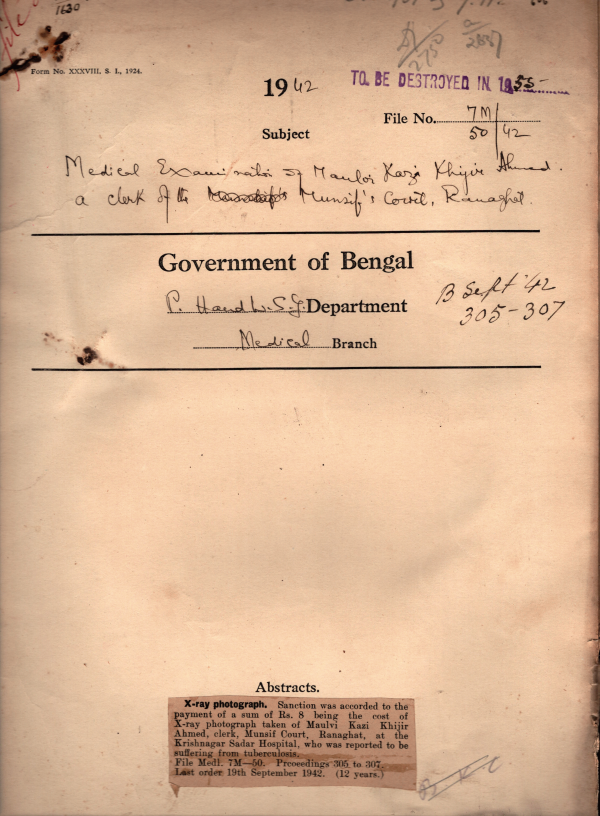 Medical Examination of Mvi. Kazi Khijir Ahmed a clerk of the Munsif's court, Ranaghat.