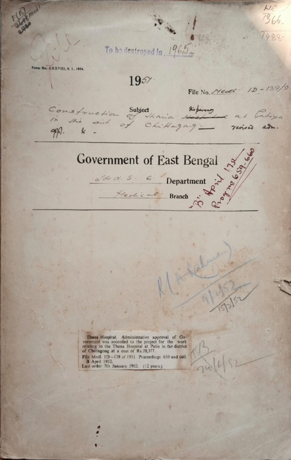 Construction of thana dispensary at Patiya in the District of Chittagong.