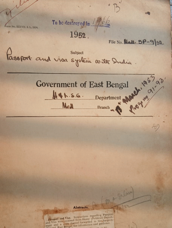 | Rack No. 10, Bundle No. 119 Sl No. 9886 Writing off of the unserviceable and irreparable articles of the D.M.S. | Rack No. 10, Bundle No. 119 Sl No. 9887 Construction of quarters for the staff of C.M.S., Tejgaon. | Rack No. 10, Bundle No. 119 Sl No. 9888 Repairs of Dohar outdoor dispensary by C.E.P.H. | Rack No. 10, Bundle No. 119 Sl No. 9889 Passport and Visa System with India. | Rack No. 10, Bundle No. 119 Sl No. 9890 Posting of Civil Surgeons. | Rack No. 10, Bundle No. 119 Sl No. 9891 Application for the release of Makbul Hossin SK. (Prisoner No-521 Dacca Central Jail). | Rack No. 10, Bundle No. 119 Sl No. 9892 Materials for "Pakistan 5 years to be issued by the Govt. of Pakistan on the next independence Day." |
