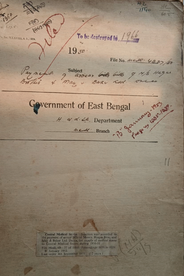 | Rack No. 10, Bundle No. 120 Sl No. 9908 Providing one wash hand basin in the office room of the Blood Bank Officer. | Rack No. 10, Bundle No. 120 Sl No. 9909 Procurement of an Indicator and incubator (22.e) for medical college Hospital. | Rack No. 10, Bundle No. 120 Sl No. 9910 Abolishment of Posts of Hon. House Surgeon and creation of 2 Posts of whale time resident Sub-Assistant Surgeon in the Barisal Sadar Prov. Hospital. | Rack No. 10, Bundle No. 120 Sl No. 9911 Payment of arrear bill of M/S. Haque Brothers and may and Baker Ltd. Dacca. | Rack No. 10, Bundle No. 120 Sl No. 9912 Purchase of 4 electric heaters out of the Hospital week fund. | Rack No. 10, Bundle No. 120 Sl No. 9913 Counting of previous service of Mvi. Abdul Whab L.D. Assistant of the Medical Directorate. | Rack No. 10, Bundle No. 120 Sl No. 9914 The East Bengal Profession trades, Collage and employments creation Rules 1950 |