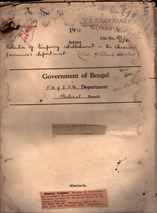 | Rack No. 09; Bundle No. 94 SL No. 7281 Appointment of staff for the Special Jail at Berhampore | Rack No. 09; Bundle No. 94 SL No. 7282 Communication to the Home Department of the G.I. of full particulars of enemy subjects who are in the private employment | Rack No. 09; Bundle No. 94 SL No. 7283 Appointment of two Radiographic in the P.G.H. Calcutta | Rack No. 09; Bundle No. 94 SL No. 7284 Retention of temporary establishment in the chemical examiners Department | Rack No. 09; Bundle No. 94 SL No. 7285 Agar control Order 1942 | Rack No. 09; Bundle No. 94 SL No. 7286 Relaxation of Rule of the state Medical Faculty, Bengal in favour of Md. Shamsul Huq, a student of the Campbell Medical School | Rack No. 09; Bundle No. 94 SL No. 7287 Appointment of a menial for the Physiology Department of the Jalpaiguri Medical School |