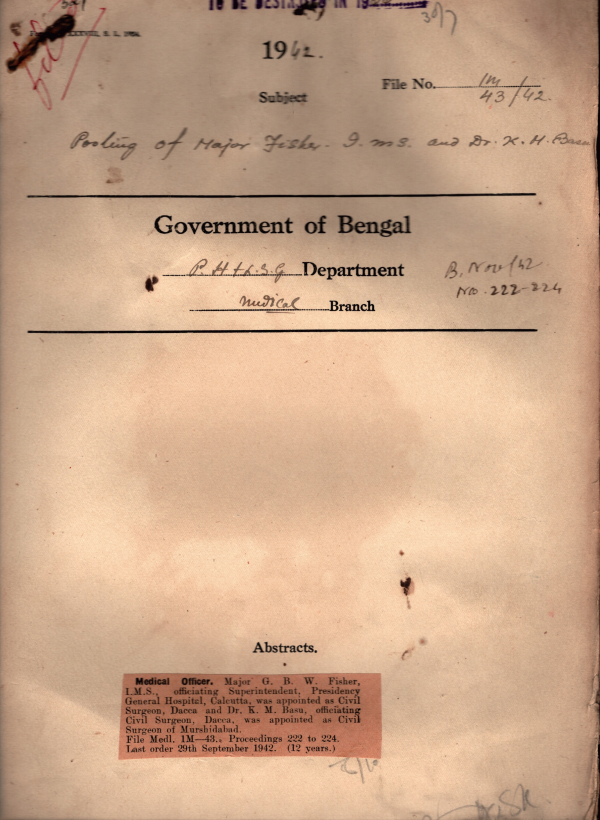 Posting of Major Fisher I.M.S. and Dr. K.M. Basu
