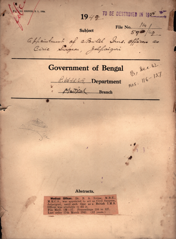 Appointment of a British I.M.S. as Civil Surgeon, Jalpaiguri