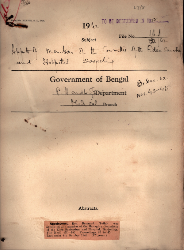 | Rack No. 09; Bundle No. 94 SL No. 7305 Removal of Criminal lunatic Subodn Ch. Sen in the Indian Mental Hospital, Ranchi | Rack No. 09; Bundle No. 94 SL No. 7306 Extension of central Legislation to excluded and partially excluded areas. | Rack No. 09; Bundle No. 94 SL No. 7307 Admissibility separation allowance to Govt. servants when they are in the midst of their families. | Rack No. 09; Bundle No. 94 SL No. 7308 Appointment of members of the committee of the Hospital, Darjeeling | Rack No. 09; Bundle No. 94 SL No. 7309 Prasannamoyee Charitable Dispensary Fund | Rack No. 09; Bundle No. 94 SL No. 7310 Posting of Dr. Prem Charan Sarker and Dr. Akshoy Kumar Roy as Assistant to the Professor of Medical Jurisprudence at the Natore Sub-division and Dispensary | Rack No. 09; Bundle No. 94 SL No. 7311 Requisition of water transport |