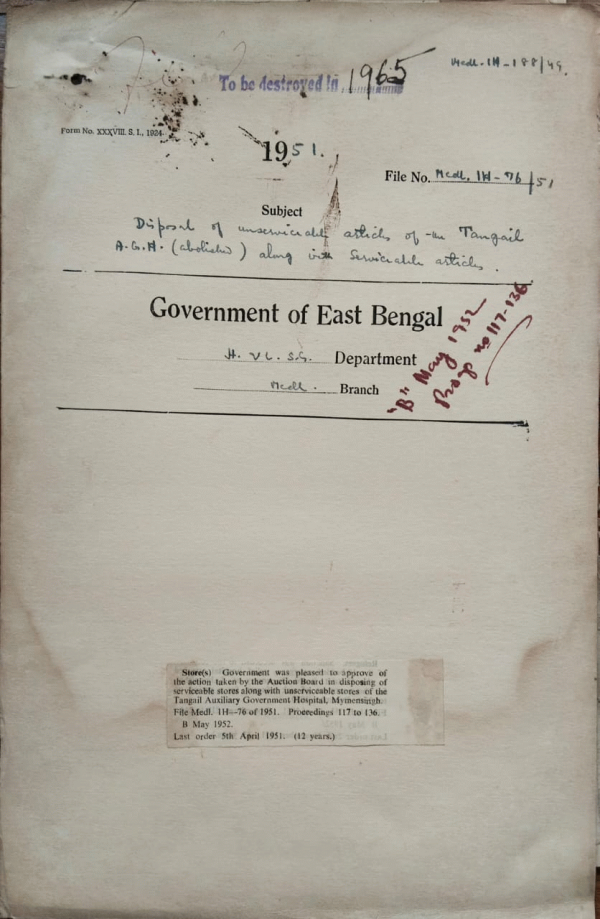 Disposal of unserviceable articles Tangail A.G. Hospital.