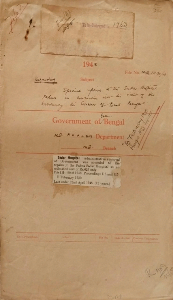 Special repairs of the Sadar Hospital Pabna in connection with the visit of his Excellency the Governor of East Bengal.