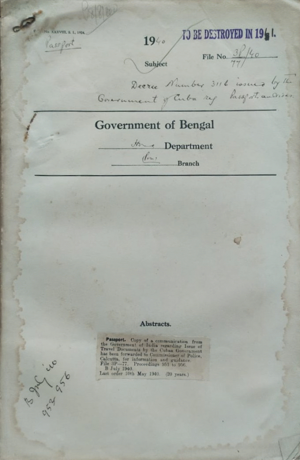 | Rack No. 42, Bundle No. 08, Sl No. 568 Iraqi visas for Swiss National. | Rack No. 42, Bundle No. 08, Sl No. 569 Grant of an emergency certificate to Mrs. Saltoun by British Consul, Basra, Iraq. | Rack No. 42, Bundle No. 08, Sl No. 570 Application from Dr. P. Chatt for assistance to proceed to India with his wife. | Rack No. 42, Bundle No. 08, Sl No. 571 The Decree number 3116 issued of Travel Documents by the Cuban govt. | Rack No. 42, Bundle No. 08, Sl No. 572 Grant of travel facilities for Burma to Mr. Rudoif Roelz & his wife, an American National. | Rack No. 42, Bundle No. 08, Sl No. 573 Special War Instruction regarding the grant of visas for British Colonies & Dominions (South Africa). | Rack No. 42, Bundle No. 08, Sl No. 574 Requirements of certificate of Character & British Subjects applying for a visa for the U.S.A. & Brazil. |