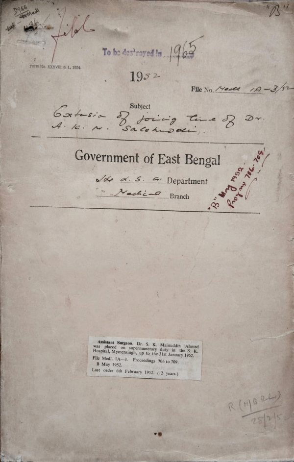 | Rack No. 9, Bundle No. 110, Sl No. 9105 Suspension of Mr. Akbal Ali L.S.C. govt. employees. | Rack No. 9, Bundle No. 110, Sl No. 9106 Compulsory retirement effected in pursuance of Not I Article 465A of Civil Service Regulations. | Rack No. 9, Bundle No. 110, Sl No. 9107 Bill-finance Bill, 1952 Court fees Livable on appeals under the See customs and central Excises and Salt acts Enhancement. | Rack No. 9, Bundle No. 110, Sl No. 9108 Extension of joining time of Dr. A.K.M. Salahuddin, Mymensingh S.K. Hospital. | Rack No. 9, Bundle No. 110, Sl No. 9109 Purchase of furniture for the Mitford Hospital, Dacca. | Rack No. 9, Bundle No. 110, Sl No. 9111 Supply of medicines to Kumudini Hospital, Mymensingh. | Rack No. 9, Bundle No. 110, Sl No. 9111 Supply of medicines to the Ahsanullah Engineering College Dacca. |