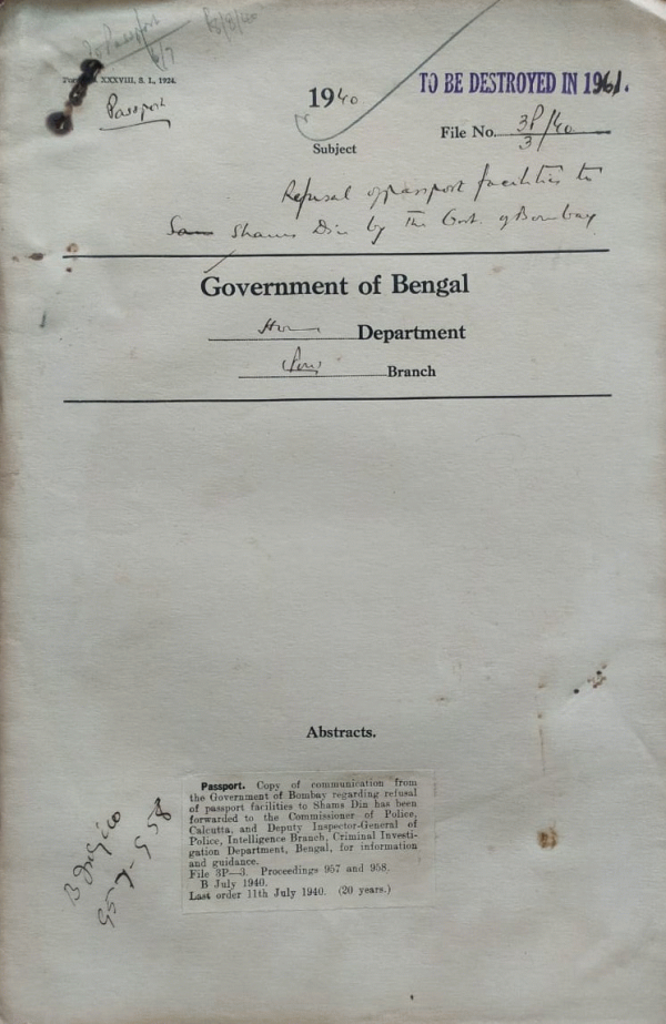 | Rack No. 42, Bundle No. 08, Sl No. 572 Grant of travel facilities for Burma to Mr. Rudoif Roelz & his wife, an American National. | Rack No. 42, Bundle No. 08, Sl No. 573 Special War Instruction regarding the grant of visas for British Colonies & Dominions (South Africa). | Rack No. 42, Bundle No. 08, Sl No. 574 Requirements of certificate of Character & British Subjects applying for a visa for the U.S.A. & Brazil. | Rack No. 42, Bundle No. 08, Sl No. 575 Requisition of Acquisition of land for construction of house for refugee families at salgaria in the district of Pabna. | Rack No. 44, Bundle No. 01, Sl No. 02 Absorption of Mr. Md. Wali Ahmed Bhuiyan, surplus steno typist of erstwhile Government of Pakistan. | Rack No. 44, Bundle No. 01, Sl No. 03 সরকারী কাজে বাংলা ভাষা ব্যবহার। | Rack No. 44, Bundle No. 01, Sl No. 04 সংস্থাপন বিভাগের অতিরিক্ত সচিবের জন্য নন-গেজেটেড পদ সৃষ্টির প্রস্তাব সংগঠন ও ব্যবস্থাপনা বিভাগে স্থানান্তরিত। |
