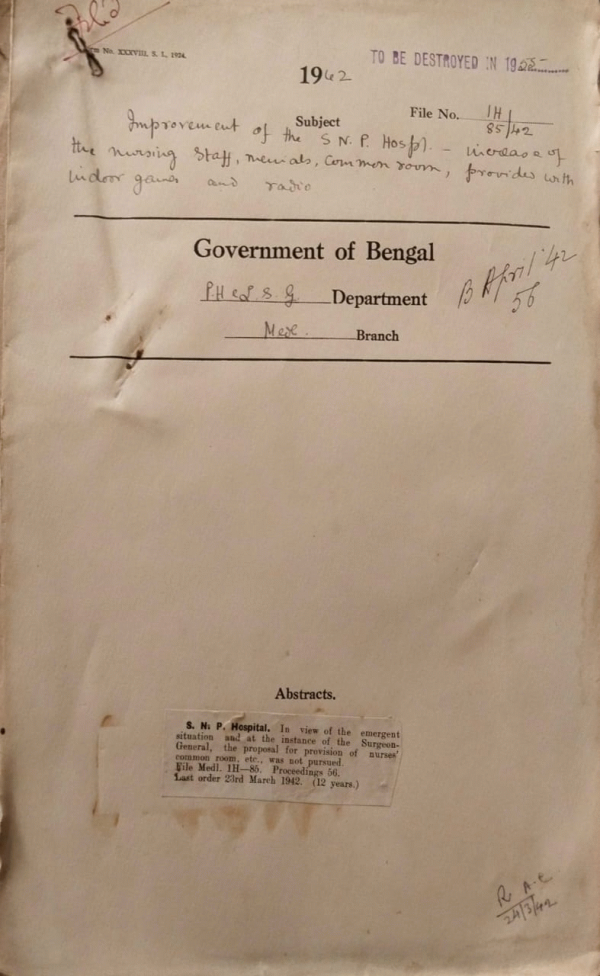 Improvement of the S.N.P. Hospital increase of the nursing staff menials common room providers with indoor games and radio.