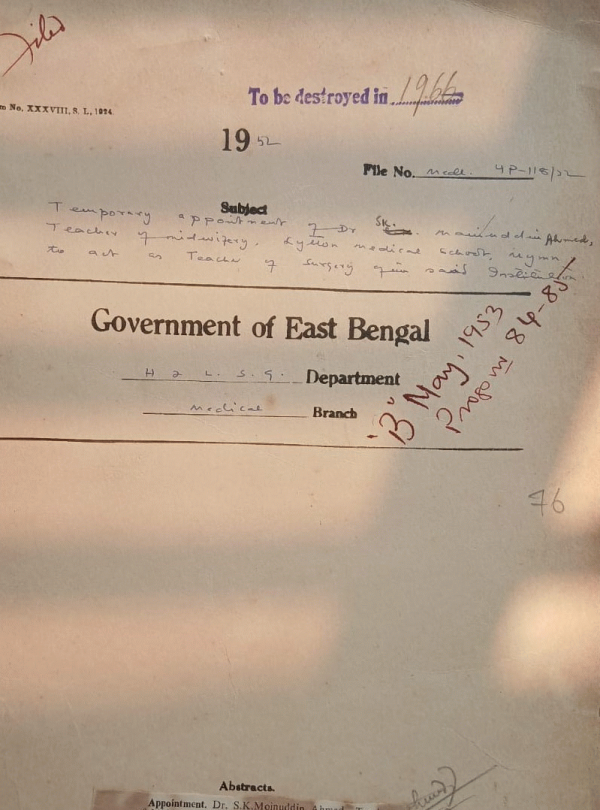 Temporary appointment of Dr. S.K. Mainuddin Ahmed Teacher of Midwifery Lytton medical school Mymensing to act as Teacher of Surgery of the Said Institution.