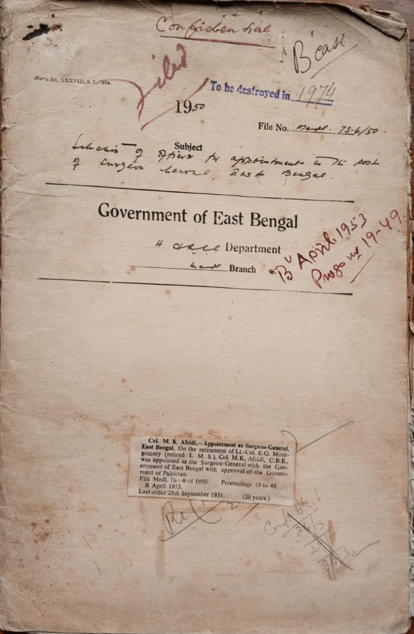 | Rack No. 10, Bundle No. 121, Sl No. 9983 Selection committee of the Chittagong Medical School 1948-49. | Rack No. 10, Bundle No. 121, Sl No. 9984 Appointment of diet constructor for the Chittagong General Hospital for the year 1950-51. | Rack No. 10, Bundle No. 121, Sl No. 9985 Admission to the Fatema Jinnah Medical College for women at Lahore. | Rack No. 10, Bundle No. 121, Sl No. 9986 Selection of officers for appointment to the post of Surgeon General, East Bengal. | Rack No. 10, Bundle No. 121, Sl No. 9987 Training in nursing abroad 1949-50. | Rack No. 10, Bundle No. 121, Sl No. 9988 Admission of students in the 1st year class of the Medical College, Dacca 1950-51. | Rack No. 10, Bundle No. 121, Sl No. 9989 Posting of Certain Assistant Surgeons. |
