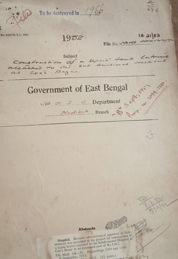 Construction of a reptic latrine attached to the Sub-Divisional Hospital at Cox's Bazar.
