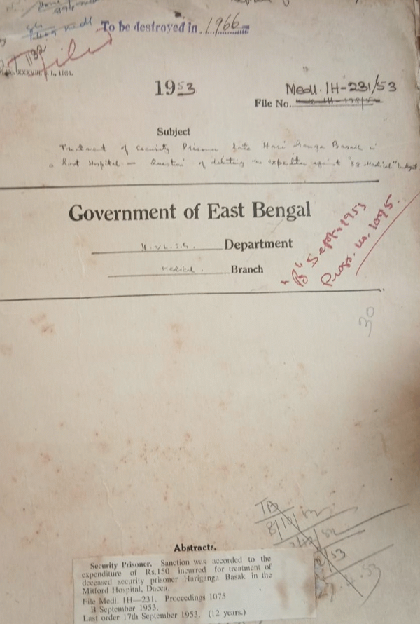 | Rack No. 10, Bundle No. 125 Sl No. 10327 Construction of a reptic latrine attached to the Sub-Divisional Hospital at Cox's Bazar. | Rack No. 10, Bundle No. 125 Sl No. 10328 Sinking of a Tube-Well in the compound of the T.B.S. Hospital at Khulna. | Rack No. 10, Bundle No. 125 Sl No. 10329 Motor Car advance Box Dr. A. Latif, M.B. officiating C/S, Noakhali. | Rack No. 10, Bundle No. 125 Sl No. 10330 Treatment of Security Prisoner Hari Ganga Basak in the Mitford Hospital, Dacca. | Rack No. 10, Bundle No. 125 Sl No. 10331 A.Q. regarding total number of Lady Doctors and Percentage of Lady doctors to common people etc. | Rack No. 10, Bundle No. 125 Sl No. 10332 House building advance to Dr. Md. Ibahim. | Rack No. 10, Bundle No. 125 Sl No. 10333 Policy of unification of P.H. & M.S. |