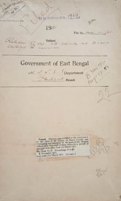 Retention of the V.D. Clinic at Dacca Chittagong & Comilla.