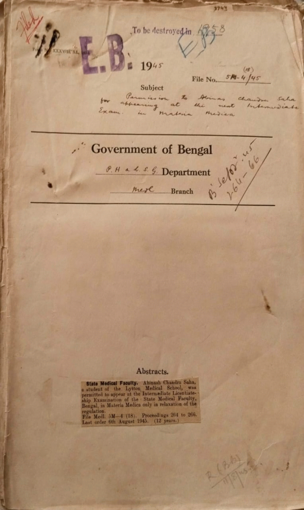 Permission Abinash Chandra Saha for appearing at the next intermediate exam in materic.