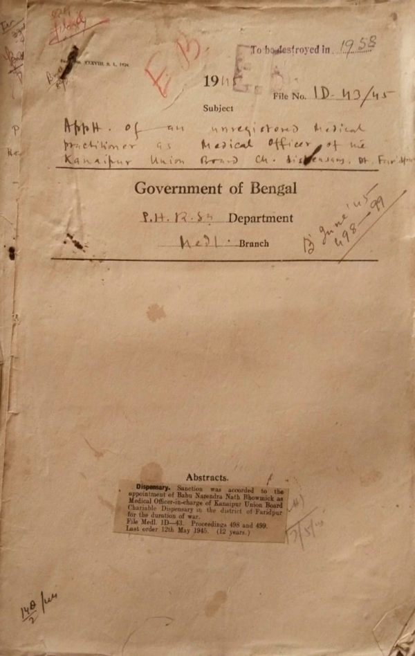 Appointment of an reregistered medical practitioner as Medical officer of the Kanaipur Union Bd. Charitable Dispensary District Faridpur.
