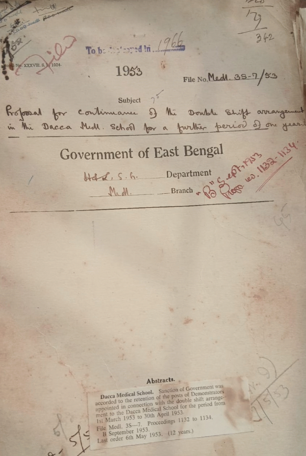 | Rack No. 10, Bundle No. 125 Sl No. 10342 Transfer of Funds belongs to Army Units from Pakistan to India. | Rack No. 10, Bundle No. 125 Sl No. 10343 Purchase of furniture for the office of the District Health Officer, Bakarganj. | Rack No. 10, Bundle No. 125 Sl No. 10344 Schedule of new Major works proposed for inclusion in the Civil Works budget for 1953-54. | Rack No. 10, Bundle No. 125 Sl No. 10345 Proposal for continuance of the Double Shift arrangement in the D.M.S. for a future period of one year. | Rack No. 10, Bundle No. 125 Sl No. 10346 Certifying the Market rates by the circle officers for passing the diet bills of the 4 bedded Thana Dispensary | Rack No. 10, Bundle No. 125 Sl No. 10347 Payment of arrear T.A. bill of Dr. N. Talukdar, A/S. Sadar Hospital Dinajpur. | Rack No. 10, Bundle No. 125 Sl No. 10348 Adaptation of the provincial Bengal Medical Act, 1914 to The Bengal Medical, Act 1951. (E.B. Act of 1951). |