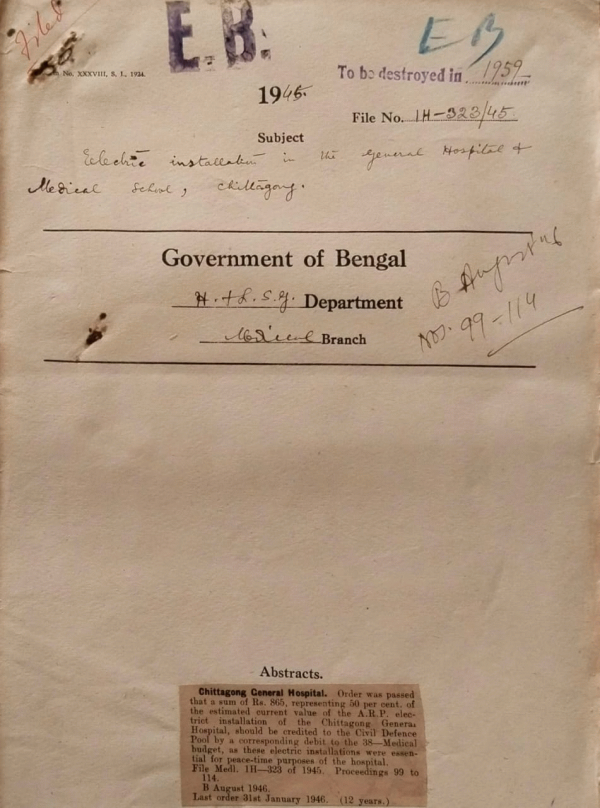 Electric instillation in the General Hospital and Medical, School Chittagong.
