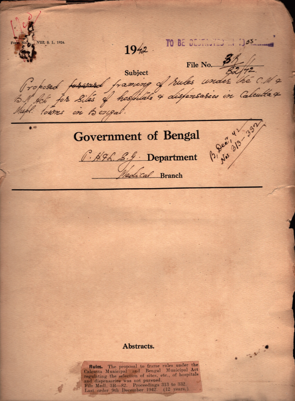 | Rack No. 09; Bundle No. 95 SL No. 7401 Petition from Mr. Amarendra Ch. Sinha electrocardiograph, assistant M.C.H. | Rack No. 09; Bundle No. 95 SL No. 7402 Schedule procedure for new expenditure should be schemes this and provision for new expenditure. | Rack No. 09; Bundle No. 95 SL No. 7403 Imposition of surcharge in all instances where inspection and shipment of stores in carried out by the Indian Stores Department. | Rack No. 09; Bundle No. 95 SL No. 7404 Proposed framing of rules under the C.M. and B.M. act for sites of hospitals and dispensaries. | Rack No. 09; Bundle No. 95 SL No. 7405 Transfer of certain patients form the Ranchi Indian mental Hospital to the mental hospitals or their respective provinces. | Rack No. 09; Bundle No. 95 SL No. 7406 Grant of Special Pay to Dr. Md. Hussain late officiating professor of medical Jurisprudence M.C.C. | Rack No. 09; Bundle No. 95 SL No. 7407 Appropriation accounts for 1940-41 and the Audit report, 1942. |