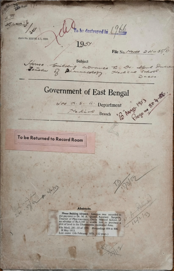 | Rack No. 10, Bundle No. 122, Sl No. 10065 Fixation of pay to D.A. etc. of Matron of this S.K. Hospital Mymensingh. | Rack No. 10, Bundle No. 122, Sl No. 10066 Govt. order regarding drawal of transfer travelling allowance bill by Colonel M.K. Afridi P.M.S. Surgeon General E. Bengal. | Rack No. 10, Bundle No. 122, Sl No. 10067 Certain improving to therapy room and X-ray room etc of X-ray department in the medical C.H. Dacca. | Rack No. 10, Bundle No. 122, Sl No. 10068 Grant of house building advance of Rs. 5220/- for A.S. Dr. M.A. Qusem. | Rack No. 10, Bundle No. 122, Sl No. 10069 Claims Application committee, Finance and revenue between East and West Bengal. | Rack No. 10, Bundle No. 122, Sl No. 10070 Improvement to the Sadar Hospital at Rangpur and the Sub-Divisional hospital Nalphemari Gaibanda Kurigram. | Rack No. 10, Bundle No. 122, Sl No. 10071 Improvement of the Sadar Hospital Danajpur resolution of the Visiting committee about. |
