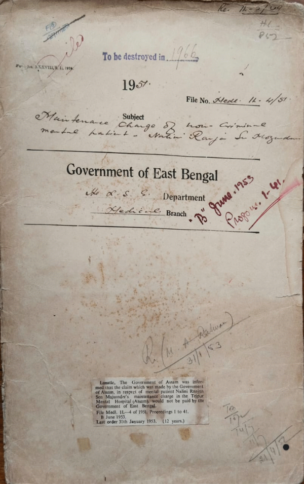 Maintenance Charge of War Criminal mental Patient N.R. Sen Majumder.