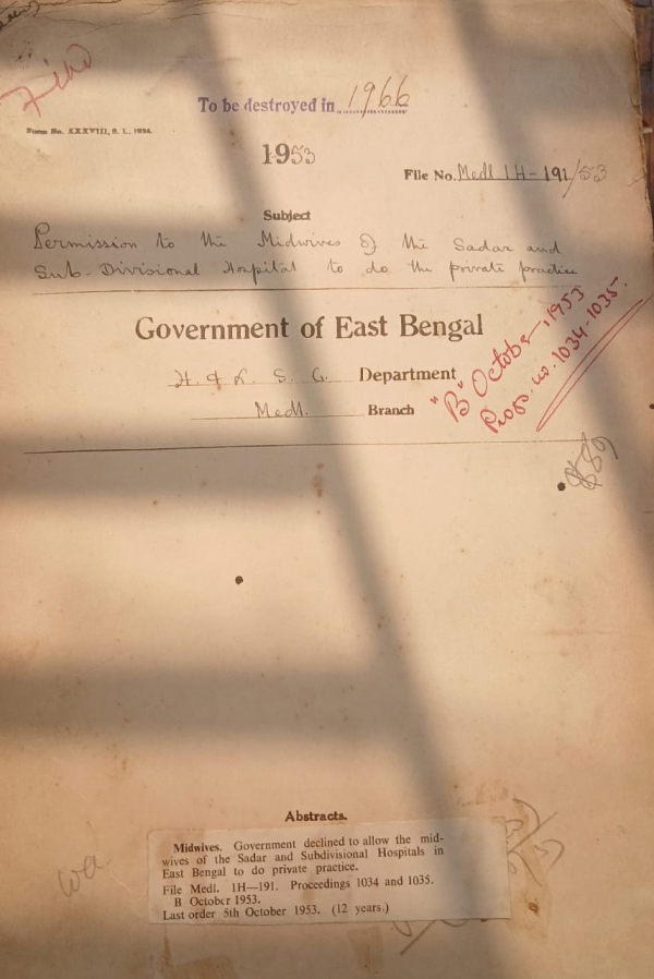 Permission to the Midwives of the Sadar and Sub-Divisional Hospital to do the Private Practice.