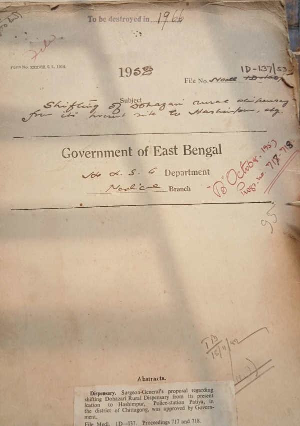 Shipping of Dohazari Rural dispensary from its present location to Hashimpur.