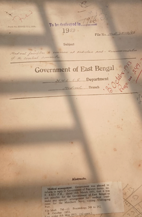 | Rack No. 10, Bundle No. 126 Sl No. 10420 Dacca medical school imposition of municipal taxes of increase rate. | Rack No. 10, Bundle No. 126 Sl No. 10421 Acquisition of land Feni Sub-Divisional provincial Hospital in the district of Noakhali. | Rack No. 10, Bundle No. 126 Sl No. 10422 A.Q. by Mr. Haran Chandra Barman, M.L.A. regarding Appointment of Principal cum Superintendent of the Dacca Medical College, Hospital. | Rack No. 10, Bundle No. 126 Sl No. 10423 Medical Facilities to Seamen at Pakistan part recommendation of the central committee. | Rack No. 10, Bundle No. 126 Sl No. 10424 Management of the Homeopathy charitable dispensary maintenance by the Dacca District Board at Beraid. | Rack No. 10, Bundle No. 126 Sl No. 10425 Assembly Question by Mr. Ali Ahmed Khan M.L.A. regarding Radiologist treatment in the Medical College Hospital Dacca. | Rack No. 10, Bundle No. 126 Sl No. 10426 Payment of Arrear Bill. |