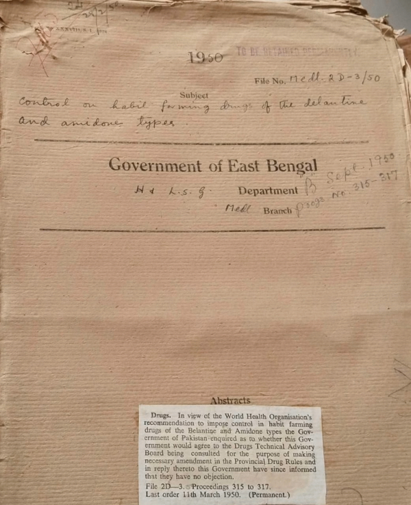 | Rack No. 09, Bundle No. 103, SI No. 8221 Advanced studies overseas utilization of scholars services on completion of studies. | Rack No. 09, Bundle No. 103, SI No. 8222 Press of Registration of Books Act 1867 (XXV of 1867) adapted by Pakistan. | Rack No. 09, Bundle No. 103, SI No. 8223 Providing fly proof wire netted ventilators R.C. Shelf et in Kitchen attached to medical college and hospital, Dacca. | Rack No. 09, Bundle No. 103, SI No. 8224 Control in habit farming drugs of the Balanchine and Amidone types. | Rack No. 09, Bundle No. 103, SI No. 8225 Sanction of Additional Special Scholarships to the 3rd year students of the Dacca Medical college during the year 1949-50. | Rack No. 09, Bundle No. 103, SI No. 8226 Provincialisation of medical and public Helath Service. | Rack No. 09, Bundle No. 103, SI No. 8227 Sanction for payment of bills relating to the last financial year. |